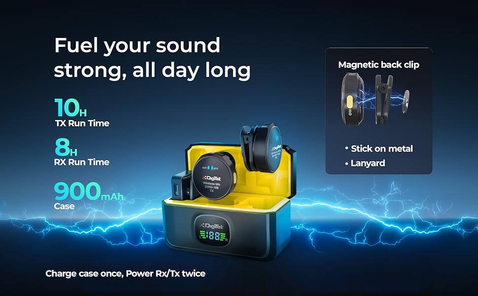 10Hr Run Time: Equipped with a long-lasting battery that provides up to 10 hours of continuous use, perfect for extended recording sessions.