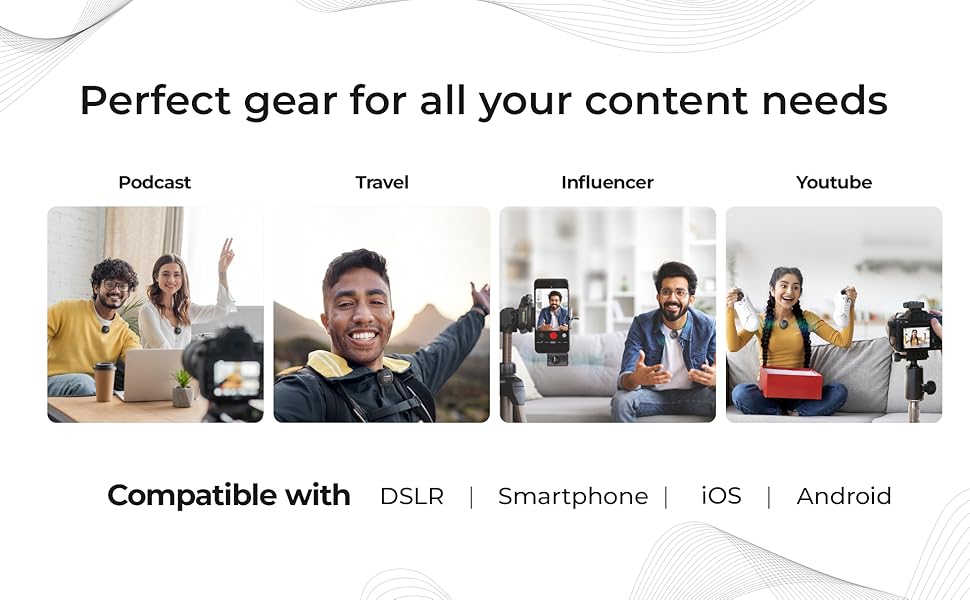 - Complete Package: Inside the box, you'll find 2 transmitters, 1 receiver, a charging case, camera cable, iOS lightning cable, C-type cable.