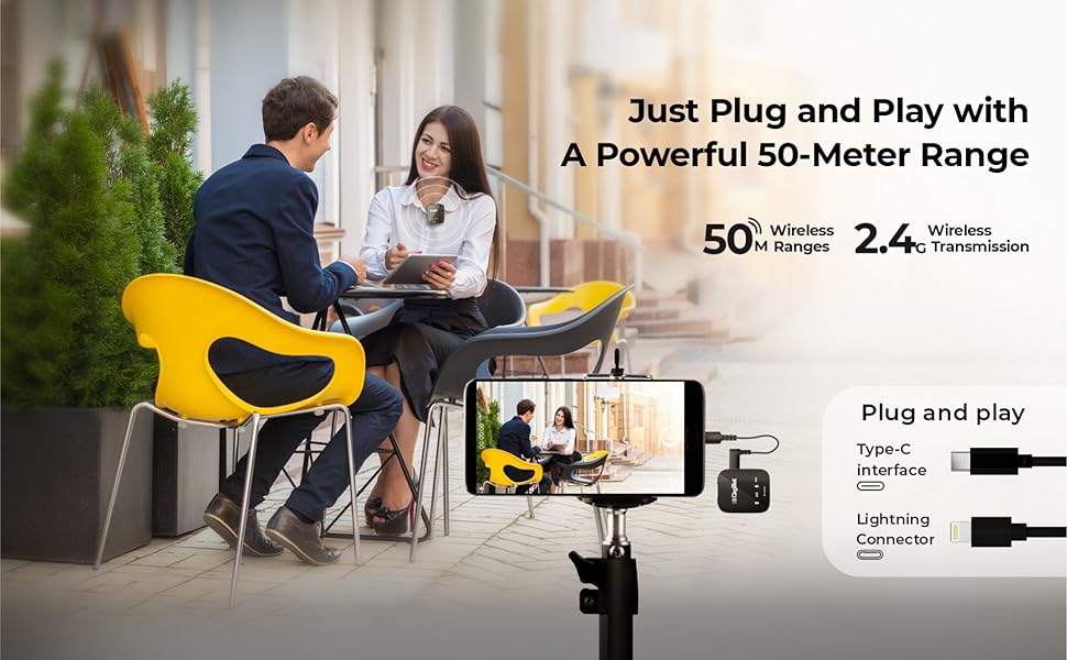 - 50m Range Voice Capture: Capture high-quality audio from up to 50 meters away, giving you flexibility and freedom during recording.