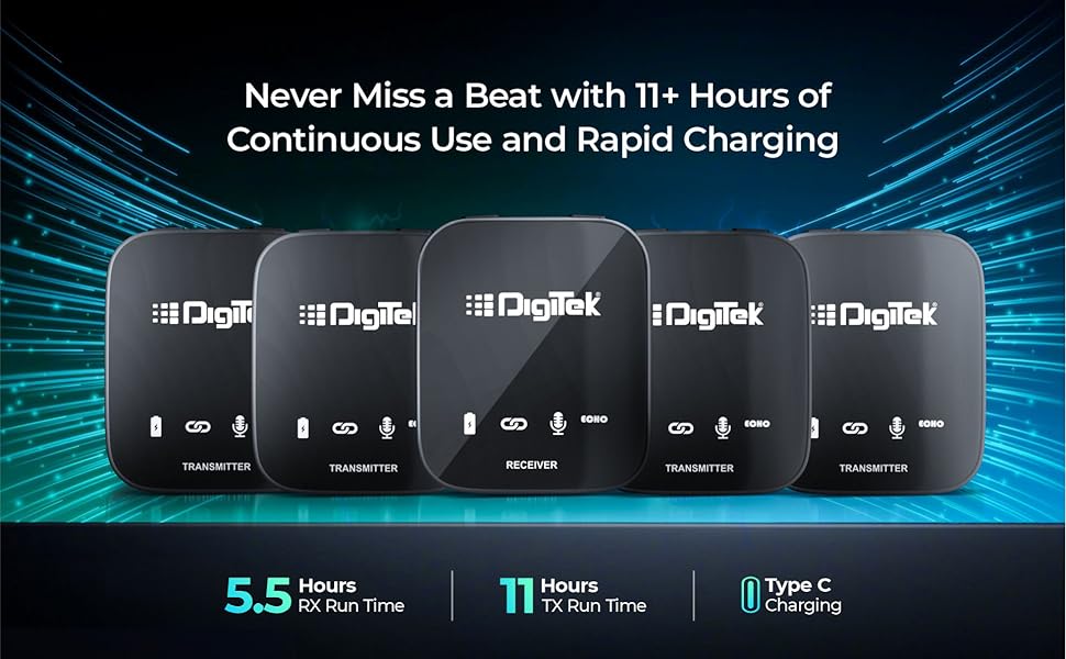 - 4-in-1 Wireless Microphone System: Digitek DWM-111 wireless mic comes with the 4(TX) Transmitter and 1(RX) Receiver for versatile and high-quality audio capture.