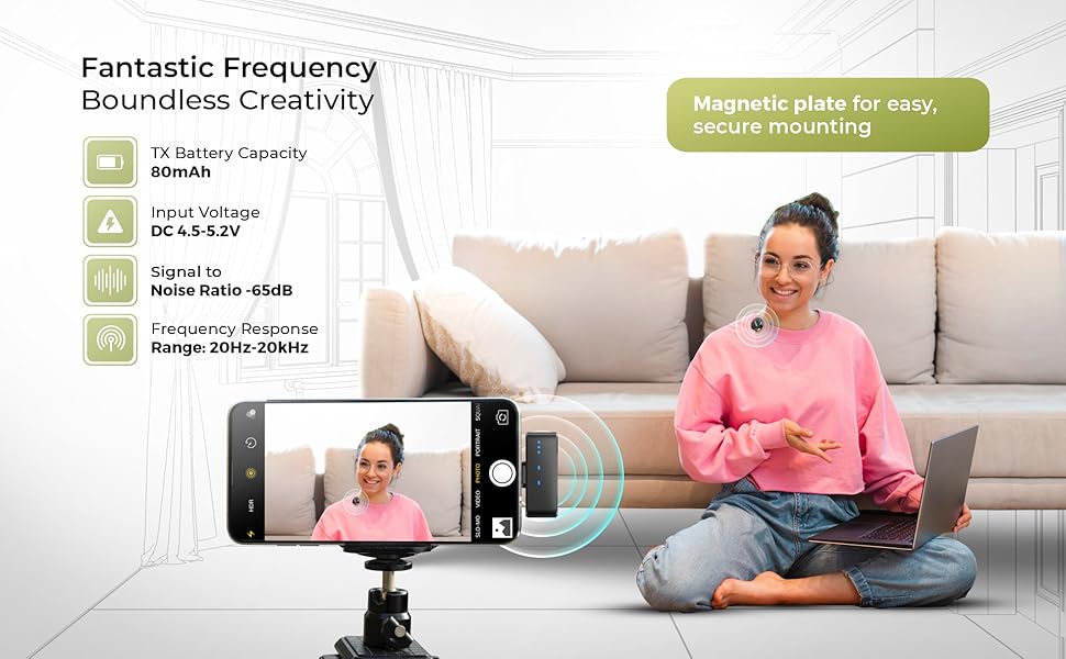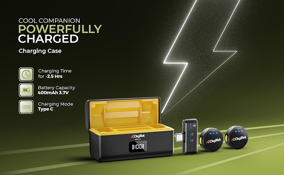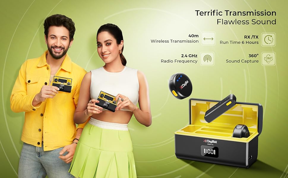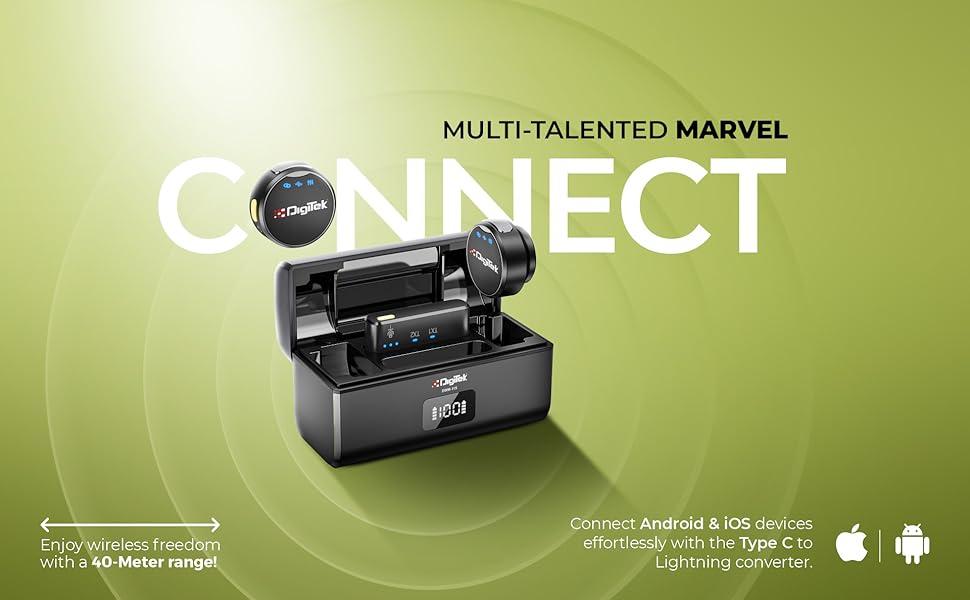DIGITEK® (DWM-115) 2-in-1 Wireless Microphone, 2.4GHz, Magnetic Clip, Noise Reduction Lavalier Mic, 40m Range, 6Hr Battery, 360° Sound Capture for iOS & Android, Ideal Video Recording, Vlogging, Youtube
