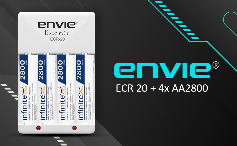 ENVIE (ECR20+AA2800 4PL) Charger for AA & AAA Rechargeable Batteries