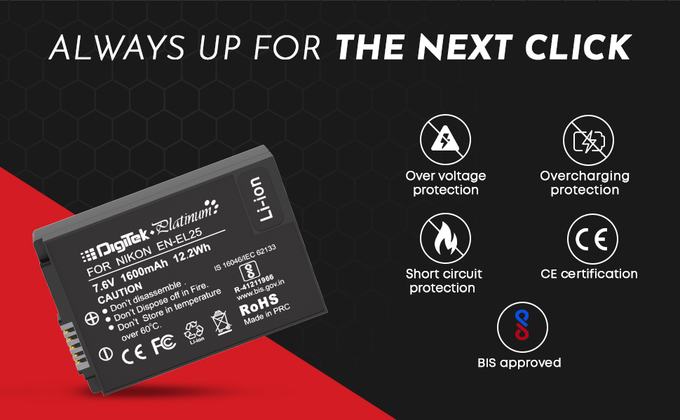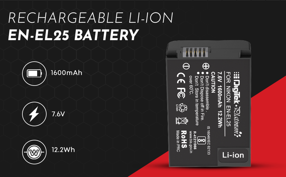 Digitek (Platinum EN-EL25) Extra Power Secondary Li-ion Rechargeable Battery for EN-EL25 (7.6V, 1600mAh)