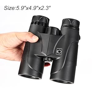 - 10x42 High Magnification - 10x magnification, 42mm objective lens binoculars, provide ultra wide field-of-view while reduce the hand shake, suitable for long time observation. Roof design equiped with a easy central focusing knob, which is easy to use.