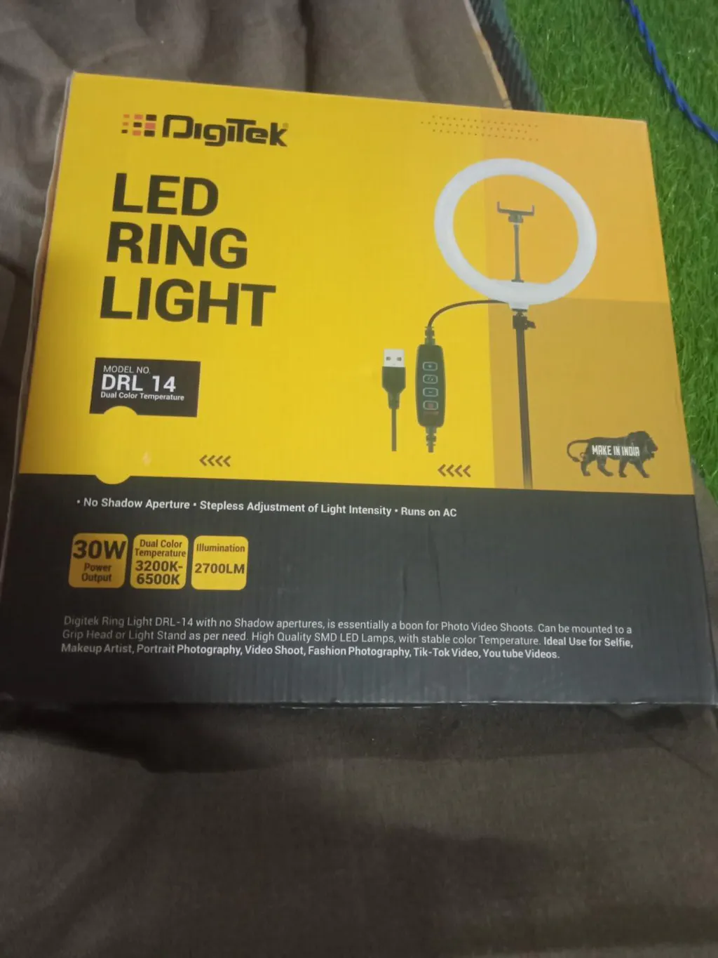 - Digitek 14 LED ring light with no shadow aperture comes with high-quality SMD LED lamps & stable colour temperature. This 30 Watt ring light can efficiently add enough light to your face or articles while recording video or capturing pictures. This is a perfect tool for beginners to professionals. This ring light gives a very soft light effect allowing you to shoot through it for a silky smooth near-shadowless effect that is flattering to your subject's complexion.