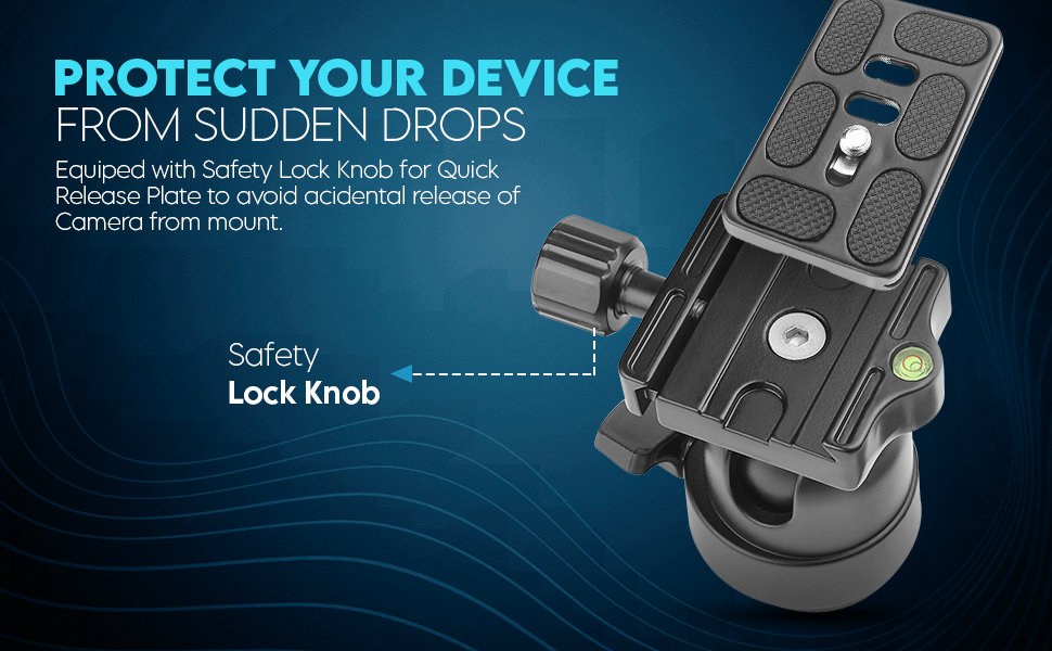 - Equipped with Safety Lock Knob for Quick Release Plate to avoid Accidental release of Camera from mount.