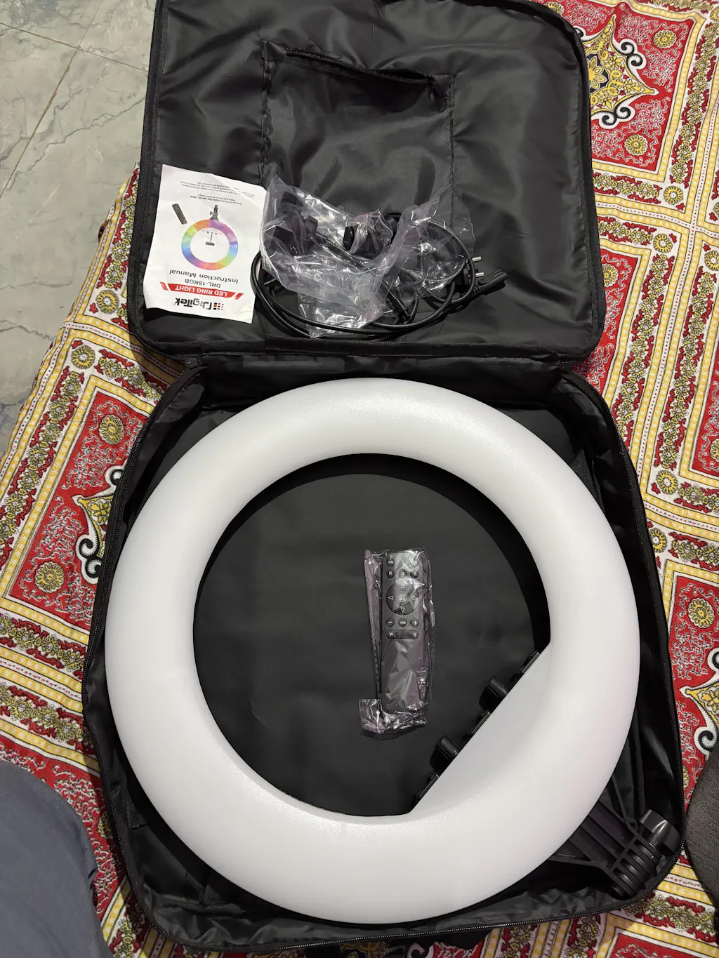 | Mounting Hardware | Hot shoe mount, Carry Bag, Ring light body, Remote, Smart phone mount |