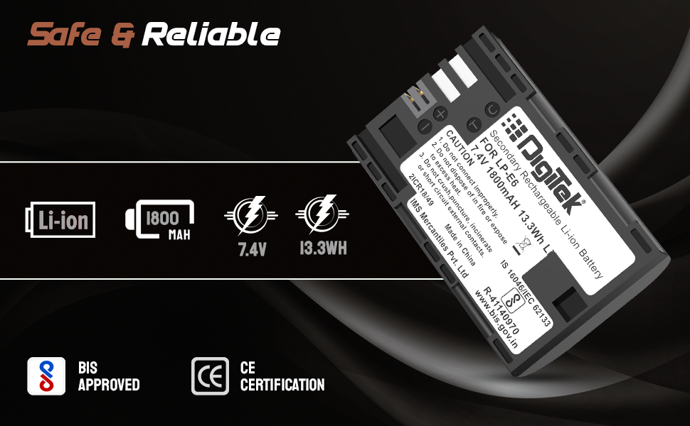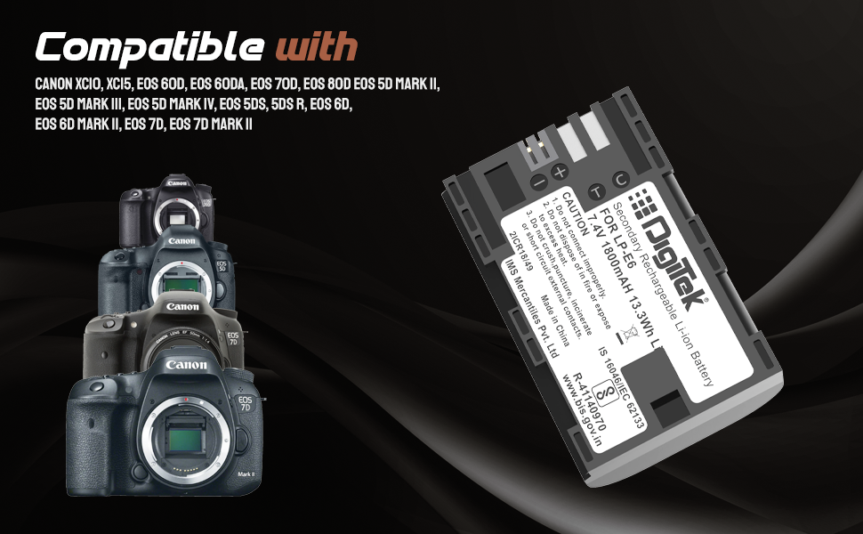 Digitek (LP-E6) Secondary Li-ion Rechargeable Battery for DSLR Camera, Compatibility - EOS 5D Mark IV, EOS 5Ds, 5DS R, EOS 6D, EOS 6D Mark II, EOS 7D, EOS 7D Mark II and More