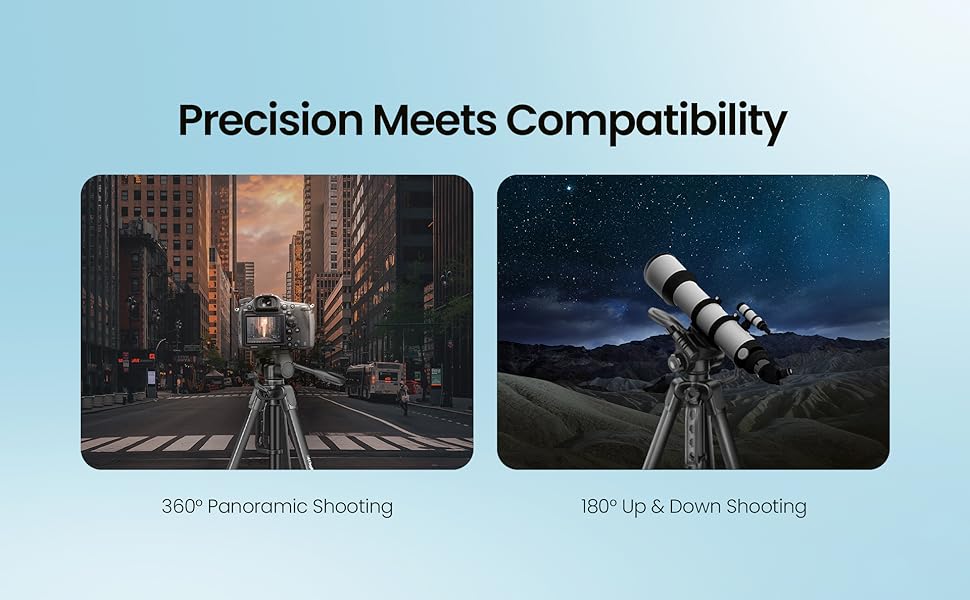 - Built-in bubble head to adjust horizontal position and 3-way head with adjustable pan to allow for tilt and swivel motion with portrait or landscape options
