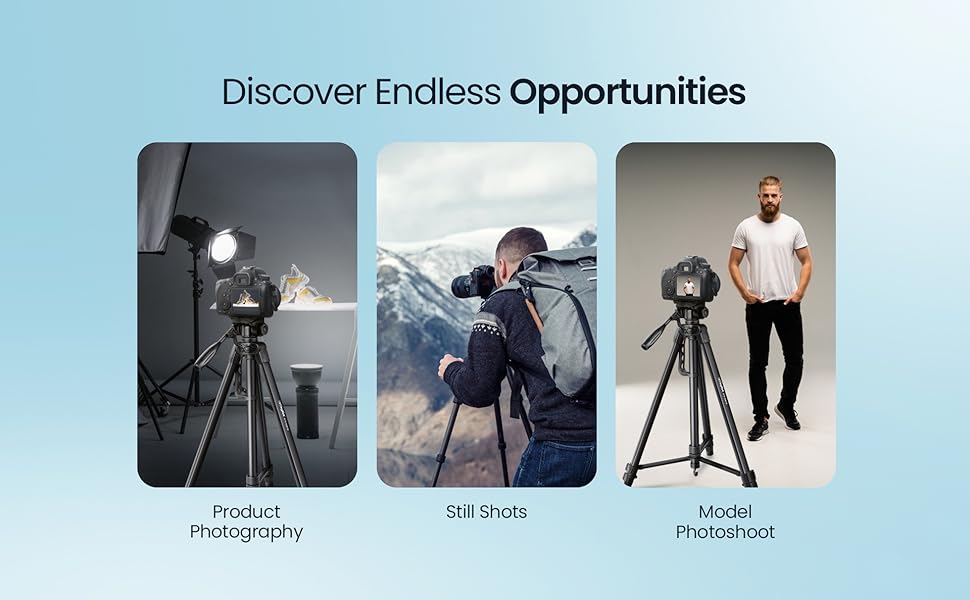 - Premium finish light weight professional tripod with adjustable height, multi level locking and steady rubberized legs